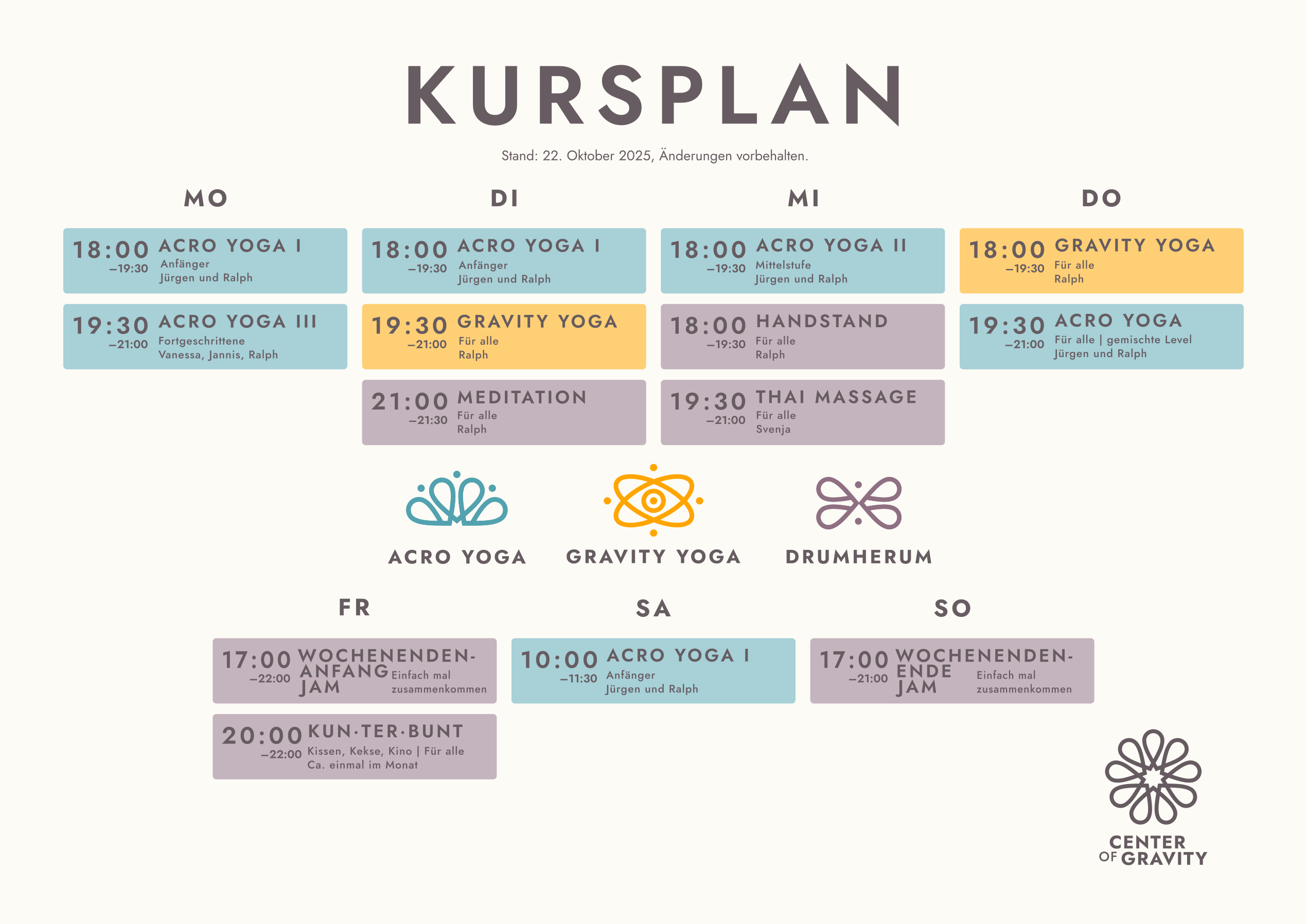 Einen Kalender speziell für Workshops und andere Events findest du weiter unten.