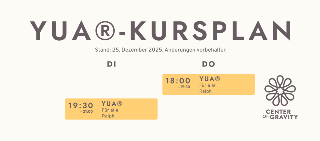 Dazu gibt es natürlich noch viel mehr zu sagen. Hier nur soweit: Die Entwicklung und die Geburt von YUA® haben das Center Of Gravity, seine Werte und seine sichere, einladende Grundstimmung maßgeblich geprägt.